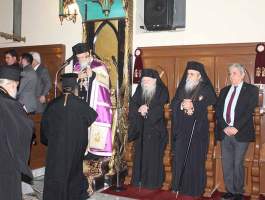 Την Κυριώνυμο ημέρα της εορτής κατά το Αρχιερατικό Πανηγυρικό Συλλείτουργο, προεξήρχε ο Σεβασμιώτατος Μητροπολίτης Κορίνθου κ.κ. Διονύσιος, ορθοτομώντας γλαφυρά και σαγηνευτικά τον Θείον Λόγον, με την πλούσια Θεολογική και Πατερική γνώση που τον διακατέχει, πλαισιούμενος από τον Σεβασμιώτατο Μητροπολίτη μας κ.κ. Γερμανόν, καθώς επίσης τους Θεοφιλεστάτους Επισκόπους Ανδρούσης κ.κ. Κωνστάντιον και Ωλένης κ.κ. Αθανάσιον.