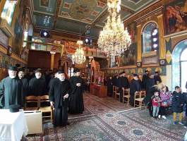 Πριν την Σύναξη τελέσθηκε ως είθισται η Αρχιερατική Θεία Λειτουργία προεξάρχοντος του Θεοφιλεστάτου Επισκόπου Ωλένης κ.κ. Αθανασίου, πλαισιουμένου από χορεία Πρεσβυτέρων. Αξιοσημείωτη δε ήταν και η συμπροσευχητική παρουσία Χριστιανών της Ενορίας, καθώς επίσης των μαθητών και μαθητριών των Σχολείων, ενώ αξίζουν θερμά συγχαρητήρια στους Εκπαιδευτικούς τους.