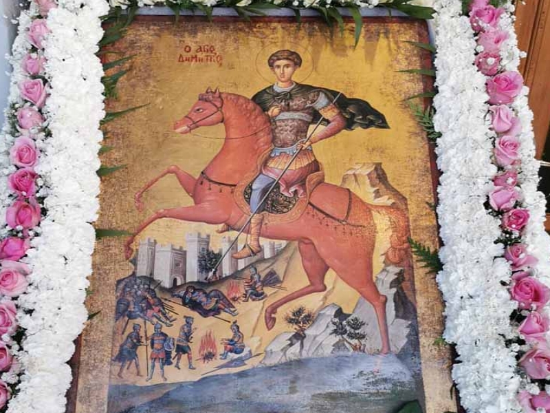Ενός από τους πλέον δημοφιλείς και γνωστούς Αγίους της Ορθόδοξης Εκκλησίας μας, ο οποίος αποτελεί το πιο ωραίο και ιδανικό πρότυπο κάθε Χριστιανού νέου στην δύσκολη και ζοφερή εποχή μας, διότι έχοντας μέσα στην καρδιά του πίστη, δίδασκε στους νέους της εποχής του, τον Ιησού Χριστό χωρίς φόβο και πάθος αλλά με δύναμη ζωής και θάρρος. Ομολογούσε δε αυτή την αγάπη του προς τον Κύριο, αποκαλύπτοντας παράλληλα τα Μυστήρια της Βασιλείας του Θεού, χωρίς να ντρέπεται και να φοβάται όπως δυστυχώς κάνουν κάποιοι νέοι μας, σήμερα που ντρέπονται δυστυχώς να κάνουν ακόμη και τον Σταυρό τους, θεωρώντας ταυτόχρονα οτιδήποτε ευλογημένο και αγιασμένο ως αποτυχία… Όμως ο Άγιος Δημήτριος είναι ένα παράδειγμα για όλους μας και ιδιαίτερα για τους νέους ανθρώπους, που νομίζουν ότι η ζωή είναι ατελείωτη, παντοδύναμη και νομίζουν ότι μπορούν να κάνουν τα πάντα…
