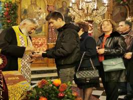 Ευάριθμοι Χριστιανοί σε κλίμα πνευματικής κατάνυξης, παρά τις δυσμενείς καιρικές συνθήκες προσήλθαν κατά την τέλεση του Ιερού Μυστηρίου, για το οποίο υπάρχει στην Αγία Γραφή σαφής παραγγελία του Αγίου Αποστόλου Ιακώβου του Αδελφοθέου να τελείται, προκειμένου να λάβουν την ευλογία του Θεού, χριόμενοι με το Άγιον Έλαιον το οποίο είναι φορέας των δωρεών του Αγίου Πνεύματος!