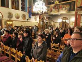 Το Ιερό Μυστήριο τελέσθηκε από τους Αιδεσιμοτάτους π. Γρηγόριο Πάπαρη, π. Γεώργιο Τούμπα, π. Παναγιώτη Κλουκίνα και τον οικείο Εφημέριο π. Νικόλαο Κατσηδήμα, ενώ για την ενσάρκωση και ενανθρώπιση του Υιού και Λόγου του Θεού και πως πρέπει ως Έλληνες Ορθόδοξοι Χριστιανοί να εορτάζουμε τα Χριστούγεννα, ομίλησε γλαφυρά και θεολογικά εμπνευσμένα, ο Καθηγητής Θεολόγος κ. Παναγιώτης Κουής.