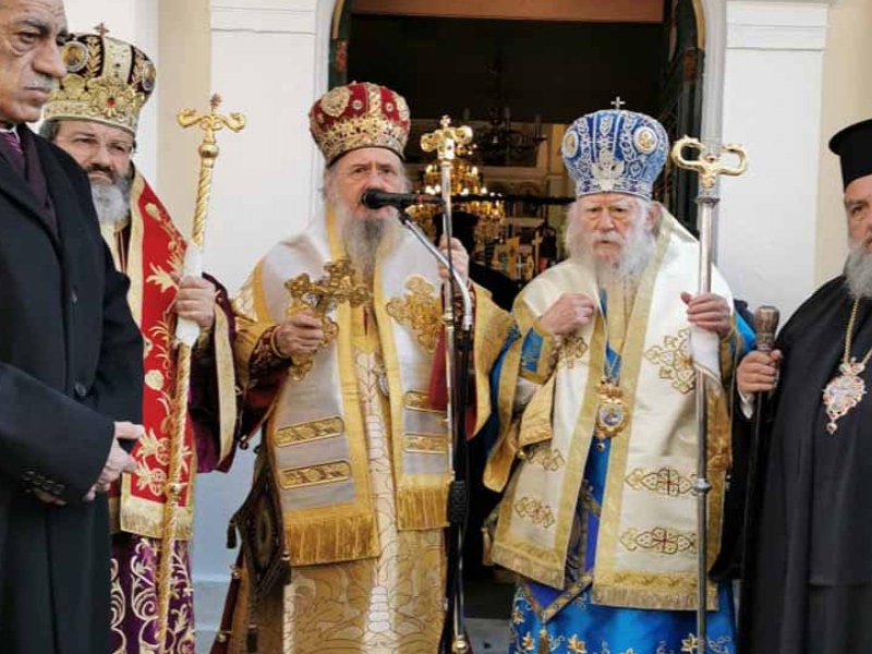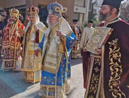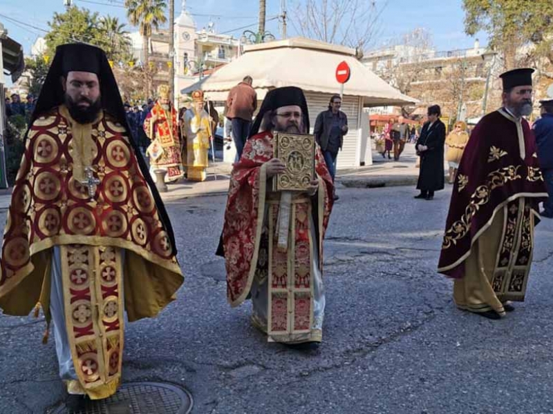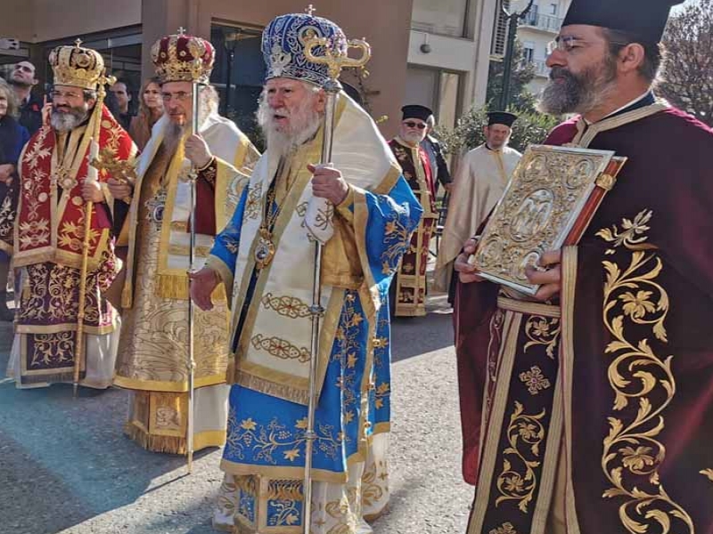 Κατά την Αρχιερατική Πανηγυρική Θεία Λειτουργία προεξήρχε ο Σεβασμιώτατος Μητροπολίτης Καισαριανής, Βύρωνος και Υμηττού κ. κ. Δανιήλ, κηρρύσοντας εξαίσια και θεόπνευστα τον Θείον Λόγον, συλλειτουργούντων δε του Σεβασμιωτάτου Μητροπολίτου μας κ.κ. Γερμανού καθώς επίσης των Θεοφιλεστάτων Επισκόπων Μεσσαορίας (Ιεράς Αρχιεπισκοπής Κύπρου) κ.κ. Γρηγορίου και Θαυμακού κ.κ. Ιακώβου, πλαισιουμένων από τους Ιεροκήρυκες της Ιεράς Μητροπόλεώς μας π. Δαμασκηνό Πετράκο, π. Φιλάρετο Σπανόπουλο και τους Αιδ. π. Παναγιώτη Παναγιωτόπουλο και π. Αναστάσιο Κολοβό. Τελετάρχης είχε οριστεί ο Προϊστάμενος του Μητροπολιτικού Ναού Αιδεσιμολογιότατος π. Αλέξιος Αναγνωστόπουλος.