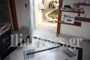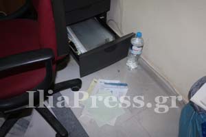 Με αιχμηρό αντικείμενο, μάλλον τσεκούρι, έσπασαν την πίσω πόρτα που οδηγεί στον κήπο, γκρέμισαν τη σιδερένια μπάρα που υπήρχε πίσω από την πόρτα και μπήκαν στα δύο πρώτα γραφεία που είναι η μηχανογράφηση.