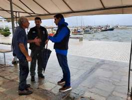 Νωρίς το πρωί, συνοδευόμενος από τον Προϊστάμενο Πολ. Προστασίας της Π.Ε Ηλείας Κ.Μπαλκάμο, επισκέφθηκε το Κατάκολο όπου συναντήθηκε με τον Πρόεδρο της Τ.Κ Φραγκίσκο Κολόσακα. Ο ίδιος τον ενημέρωσε για τις, μικρής έκτασης, ζημιές που προκλήθηκαν και τα επικίνδυνα σημεία. Παράλληλα, είχε σύντομη ενημέρωση από Αξιωματικούς της Πυροσβεστικής που βρίσκονταν σε περιπολία σε παράκτιες περιοχές.
