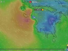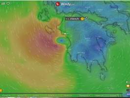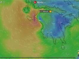 Σύμφωνα με το windy.com, το μάτι του κυκλώνα θα είναι πάνω από τον Πύργο στις 23:00 απόψε το βράδυ