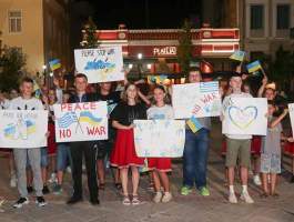 Την πρωτοβουλία για την παρουσία των Ουκρανών μαθητών στην πρωτεύουσα του Νομού είχε ο σύλλογος Ελληνοουκρανικής Φιλίας «ο Φάρος», δια του προέδρου του Μιχάλη Ροδόπουλου. Οι Ουκρανοί μαθητές που βιώνουν τη φρίκη του πολέμου, μετέβησαν στην κεντρική πλατεία, όπου κρατώντας τη σημαία της χώρας τους σε γιγάντιες διαστάσεις, θέλησαν να στείλουν ένα «ηχηρό» μήνυμα κατά του πολέμου.