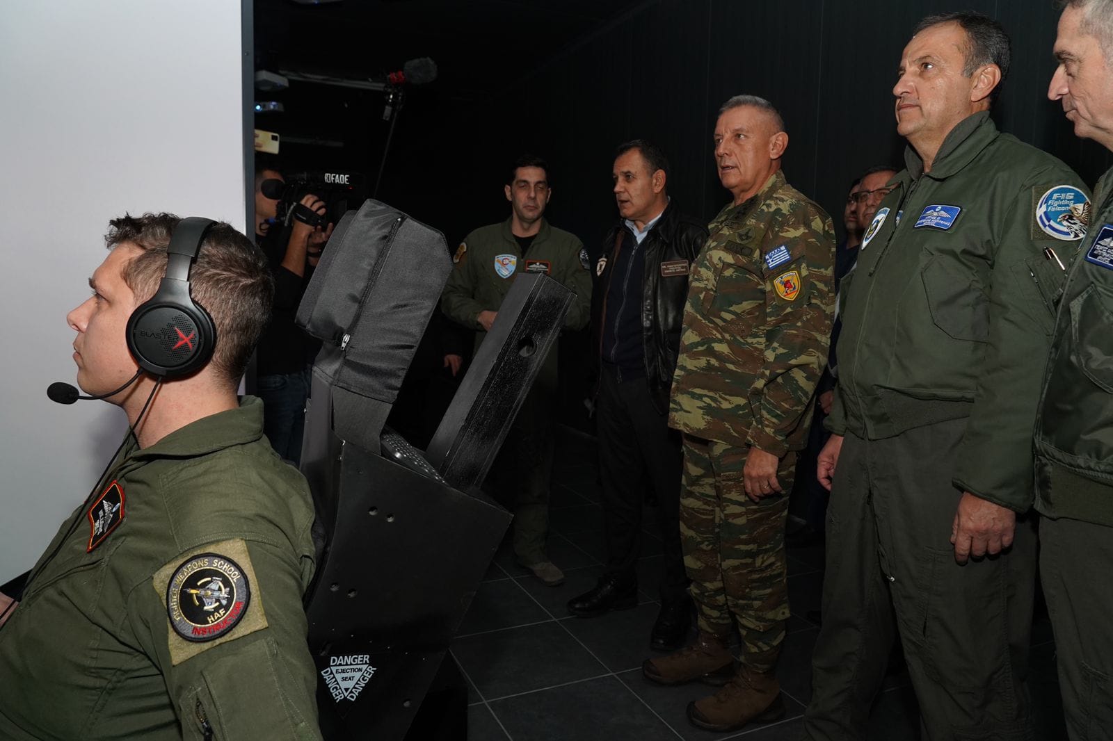 Κατά τον σύντομο χαιρετισμό του, ο Αρχηγός ΓΕΕΘΑ εξέφρασε την ικανοποίησή του για τις νέες εγκαταστάσεις της Μοίρας Επιχειρησιακής Συνθετικής Εκπαίδευσης (ΜΕΣΕ) και τους 11 εξομοιωτές (10 Αεροσκαφών και 1 JTAC) που διαθέτει, οι οποίοι σχεδιάστηκαν και κατασκευάστηκαν αποκλειστικά από το προσωπικό του ΚΕΑΤ, σε συνεργασία με προσωπικό της νεότευκτης Διοίκησης Ειδικού Πολέμου (ΔΕΠ) του ΓΕΕΘΑ για τον εξομοιωτή των Ελεγκτών Τερματικής Καθοδήγησης JTAC (Joint Terminal Attack Controller).