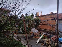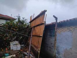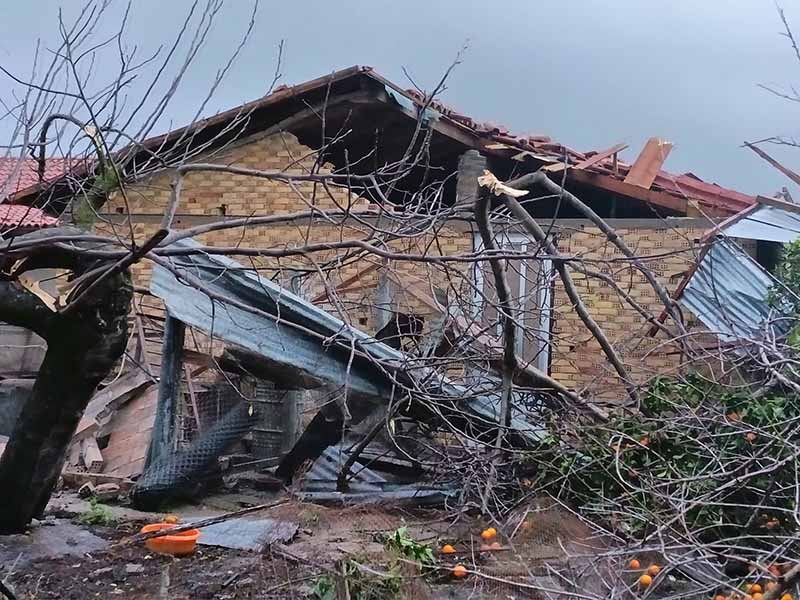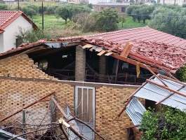 Αποθήκη στην περιοχή μοιάζει βομβαρδισμένη. Η μισή σκεπή έχει ξηλωθεί παίρνοντας μαζί της και τμήμα του τοίχου.