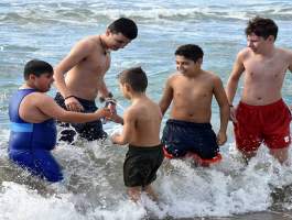 Πέντε κολυμβητές βούτηξαν στη θάλασσα για να πιάσουν το Σταυρό.