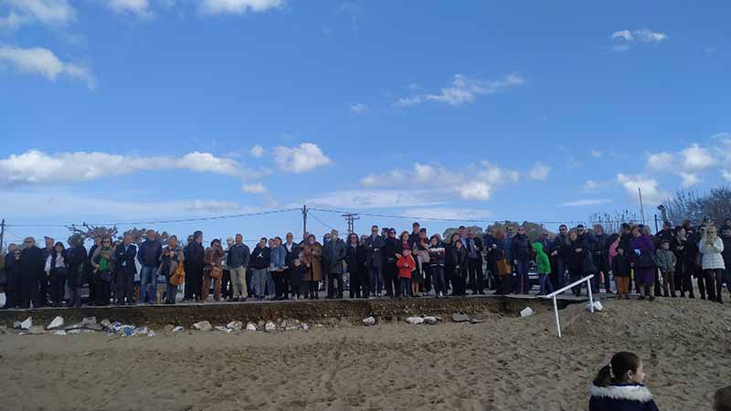 Στις 11 το πρώι οι πιστοί με πομπή κατευθύνθηκαν στη θάλασσα όπου ο Ιερέας έριξε το Σταυρό και αγίασε τα νερά.
