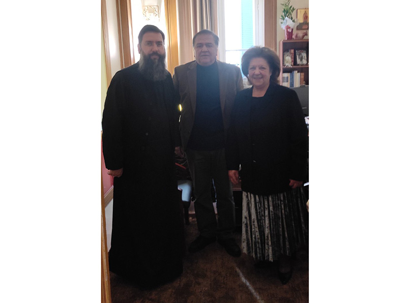 Τον κ. Παναγιώτη Γκινόπουλο συνόδευε η δημοσιογράφος του Ρ.Σ. της Ιεράς Μητροπόλεως κ. Μαρία Δημητρακοπούλου, με την οποία τον συνδέει μακροχρόνια φιλία.