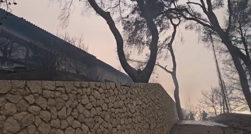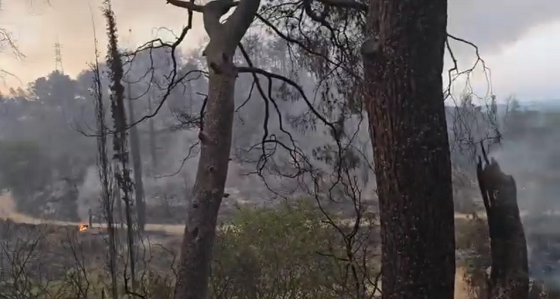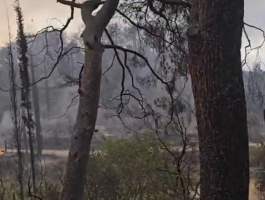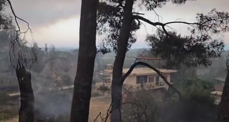 Η πύρινη λαίλαπα δεν άφησε τίποτα στο πέρασμά της από το πευκόδασος στα Χανάκια στην είσοδο του χωριού από την παλιά Εθνική Οδό.