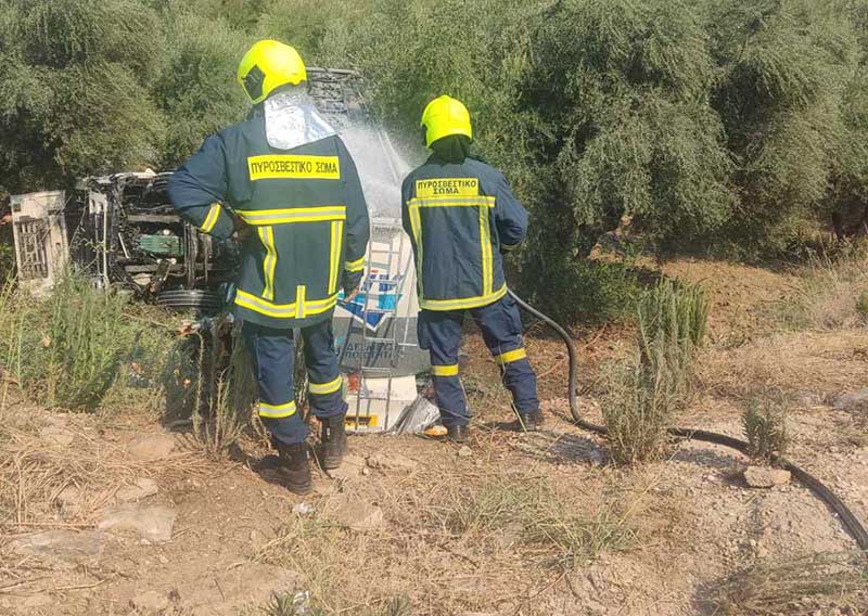 Ευτυχώς το όχημα ήταν άδειο από καύσιμα και ο οδηγός δεν είχε εγκλωβιστεί.
