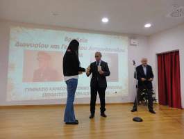 «Είμαι ιδιαίτερα χαρούμενος που είμαι σήμερα εδώ ανάμεσα σας.» είπε ο δήμαρχος απευθυνόμενος κυρίως στους μαθητές των δύο σχολείων. Ενώ στη συνέχεια αναφέρθηκε στην αλληλεγγύη, στον σεβασμό και στην αγάπη που πρέπει να υπάρχει μεταξύ μαθητών ώστε να διαμορφωθούν οι συνθήκες για ένα ευχάριστο σήμερα και ένα ελπιδοφόρο αύριο.