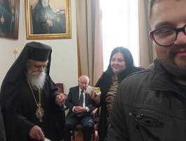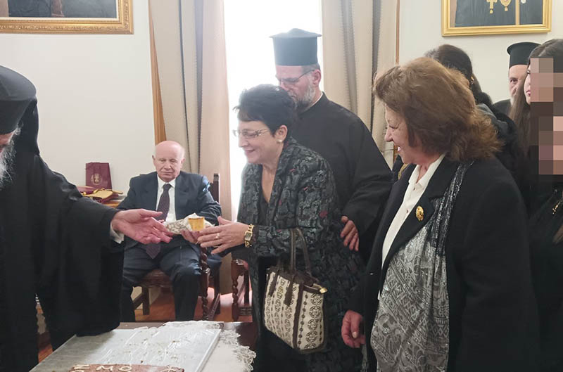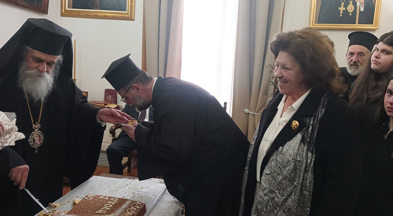 Στο Μητροπολιτικό Μέγαρο παρευρέθηκαν ο Πρωτοσύγκελος της Ι. Μητροπόλεως π. Φιλάρετος Σπανόπουλος, οι σεβαστοί Ιερείς και οι εργαζόμενοι της Ι. Μητροπόλεως, βουλευτές του Νομού μας, οι τοπικοί άρχοντες, εκπρόσωποι των Ενόπλων Δυνάμεων, των σωμάτων ασφαλείας, εκπρόσωποι συλλόγων και πλήθος κόσμου.