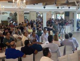 Ο πρόεδρος του Συλλόγου Λίμνης Πηνειού Ήλιδας, κ. Γιάννης Παρασκευόπουλος, που κάνει τεράστιο προσωπικό και συλλογικό αγώνα για το συγκεκριμένο θέμα, ήταν αυτός που καλωσόρισε τους παρευρισκόμενους, τους ευχαρίστησε και έστειλε ξεκάθαρο μήνυμα. «Δεν θα κάνουμε πίσω, δεν θα επιτρέψουμε την εγκατάστασηφωτοβολταϊκών» ήταν τα λόγια του, ενώ στηλίτευση τη στάση της πλειοψηφίας των αιρετών που δεν έχουν πει «ΟΧΙ» στην δήθεν «επένδυση».