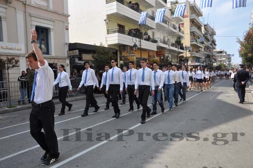 Οι εκπαιδευτικοί της ΕΛΜΕ Ηλείας έκαναν διαμαρτυρία με πανό στην κεντρική πλατεία του Πύργου. Οι πολίτες που θέλησαν να παρευρεθούν ως θεατές στην παρέλαση των μαθητών την παρακολούθησαν πίσω από τα κιγκλιδώματα.