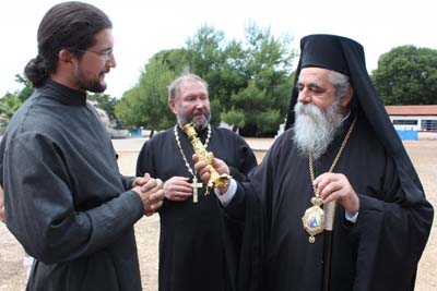 Χθες, επισκέφθηκε την κατασκήνωση ο θεοφ. κ. Αθανάσιος, ευλόγησε την αποστολή και μετέφερε τα καλωσορίσματα και τις ευχές του Ποιμενάρχη της Ηλείας κ. Γερμανού.