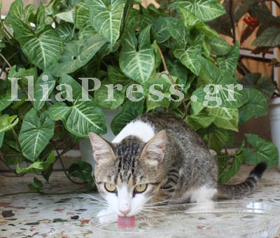 Το IliaPress βρήκε το μικρό γατάκι να διψά πολύ και να έχει ανάγκη από λίγο δροσερό νεράκι. Η γλωσσούλα του... γραβάτα!