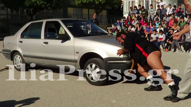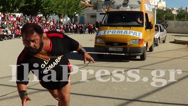 Στο 2ο Δημοτικό Σχολείο Πύργου παρουσίασε ένα ακόμα εκπαιδευτικό πρόγραμμα, κόβοντας την ανάσα μικρών και  μεγάλων. Η κάμερα του IliaPress κατέγραψε τους άθλους του. Δεν είναι η πρώτη φορά που ο Γιώργος Τρομάρας βρίσκεται στον Νομό Ηλείας. Πριν από μερικά χρόνια, στον Πύργο, είχε τραβήξει βαγόνια τρένου, εντυπωσιάζοντας για άλλη μια φορά με την τιτάνια δύναμή του.