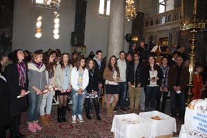 Στο τέλος της Θείας Λειτουργίας έγινε η απονομή των Διπλωμάτων, στους απόφοιτους της Σχολής Βυζαντικής Μουσικής της Ιεράς Μητρόπολης Ηλείας, Ευθύμιο Τυλιγάδα, Νικόλαο Πατσή και Δημήτρη Καρνέζο.