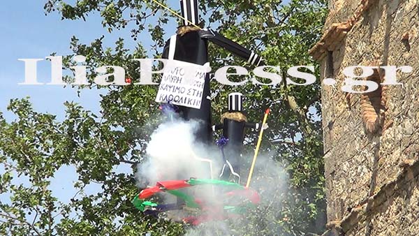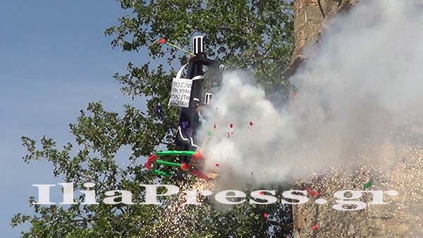 Αφού του βάζουν φωτιά, αρχίζει το έργο της καταστροφής του. Δεκάδες βεγγαλικά και βαρελότα δημιουργούν μια φανταστική ατμόσφαιρα που εντυπωσιάζει και ενθουσιάζει το πλήθος που παρακολουθεί.