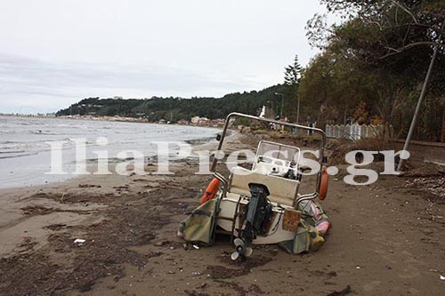 Ένα φουσκωτό. που είχε αγκυροβολήσει στη θάλασσα του Κατακόλου, στο ύψος της "Συκιάς", ήταν ένα από τα " θύματά της.