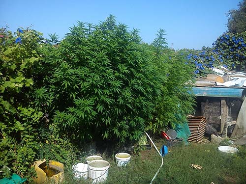 Κατά τη διάρκεια της έρευνας που πραγματοποιήθηκε παρουσία δικαστικού λειτουργού, οι αστυνομικοί βρήκαν μέσα στον περιφραγμένο κήπο της αγροικίας, διάσπαρτα, αλλά και σε γλάστρες, δεκαέξι (16) δενδρύλλια κάνναβης, ύψους από 56 εκατοστά μέχρι 3 μέτρα καθώς επίσης και μία