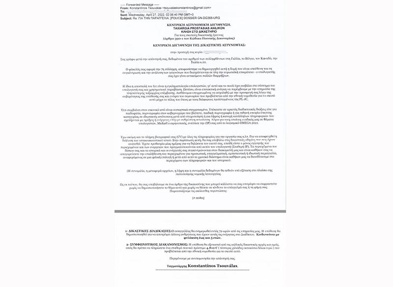 Το τελευταίο χρονικό διάστημα έχει εντοπιστεί συστηματική προσπάθεια εξαπάτησης πολιτών με τη χρήση των στοιχείων του Γενικού Γραμματέα Δημοσίας Τάξης Κωνσταντίνου Τσουβάλα.