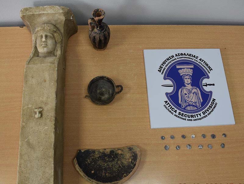 Συνελήφθησαν, πρωινές ώρες της 8-10-2021 σε περιοχή της Ηλείας, έπειτα από συντονισμένη επιχείρηση αστυνομικών του Τμήματος Πολιτιστικής Κληρονομιάς και Αρχαιοτήτων της Διεύθυνσης Ασφάλειας Αττικής, δύο (2) ημεδαποί, ηλικίας 38 και 52 ετών, μέλη εγκληματικής οργάνωσης που δραστηριοποιείτο στην κατοχή και διάθεση προς πώληση σπουδαίων αρχαίων κινητών μνημείων. Αναζητούνται δύο (2) επιπλέον μέλη της οργάνωσης.