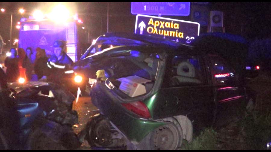 Δύο αυτοκίνητα ΙΧ συγκρούστηκαν σφοδρά στην είσοδο του Πύργου έξω από το supermarket Βασιλόπουλος, λίγο πριν τα φανάρια της Φιλοθέης περίπου στις 21.οο.