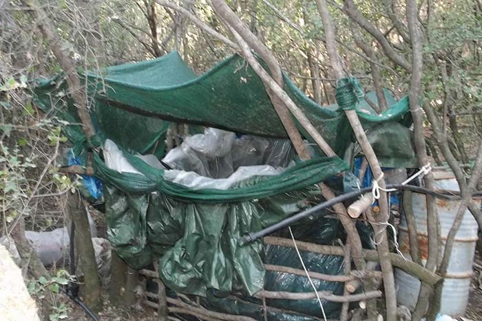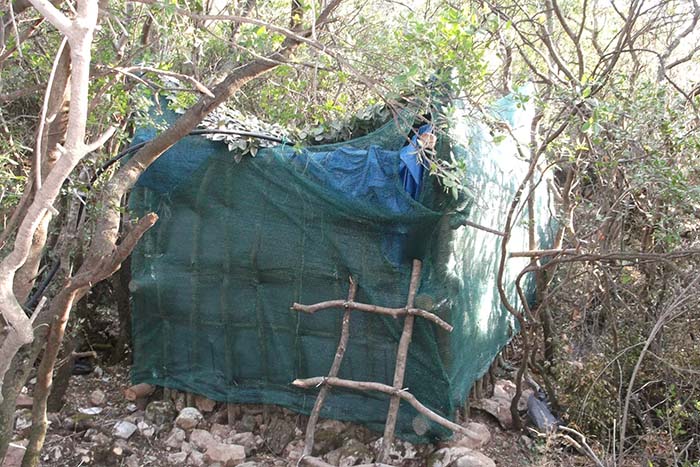Παράλληλα το παρατηρητήριο, το οποίο χρησιμοποιούσαν οι δράστες για την επόπτευση του χώρου, ήταν κατασκευασμένο από ξύλα και σκεπασμένο με δίχτυ παραλλαγής ώστε να μη γίνεται εύκολα αντιληπτό.