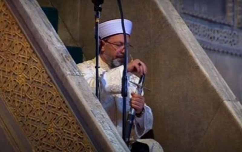 Ο ιμάμης που έκανε την πρώτη προσευχή στην Αγία Σοφία κρατούσε ένα ξίφος στο χέρι. Το ξίφος της κατάκτησης της Αγίας Σοφίας.