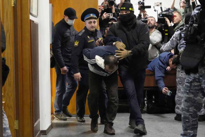 Με εμφανή σημάδια ξυλοδαρμού και κακοποίησης βρέθηκαν την Κυριακή στο δικαστήριο οι 4 συλληφθέντες της τρομοκρατικής επίθεσης στη Μόσχα, οι οποίοι κατηγορούνται ότι προκάλεσαν τον θάνατο 139 ανθρώπων και τον τραυματισμό τουλάχιστον άλλων 180.