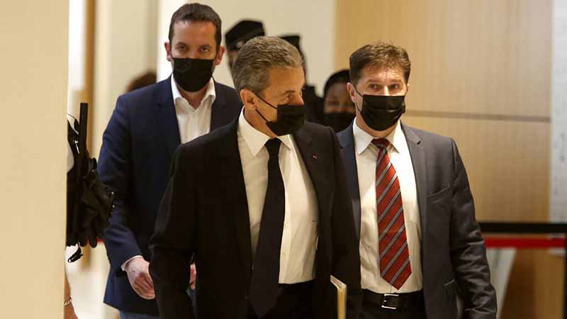 Ντυμένος με μαύρο κοστούμι και φορώντας μαύρη μάσκα, ο 66χρονος πρώην πρόεδρος εισήλθε την Τρίτη στη δικαστική αίθουσα και πήρε τη θέση του δίπλα στους συγκατηγορουμένους του, αφού χαιρέτισε, με ένα νεύμα της κεφαλής, τους δύο εκπροσώπους των εισαγγελικών αρχών.