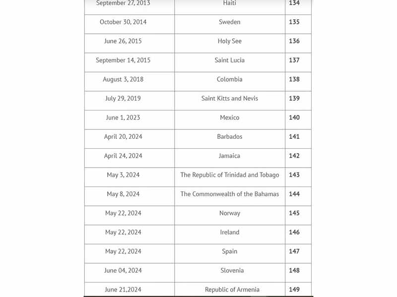 Την προηγούμενη χρονιά (2024), εν μέσω του αιματηρού πολέμου στη Λωρίδα της Γάζας και σε ένα διεθνές περιβάλλον που αλλάζει, 10 χώρες -το Μεξικό, η Αρμενία, η Σλοβενία, η Ιρλανδία, η Νορβηγία, η Ισπανία, οι Μπαχάμες, το Τρινιντάντ και Τομπάγκο, η Τζαμάικα και τα νησιά Μπαρμπάντος– αναγνώρισαν επίσημα το κράτος της Παλαιστίνης.