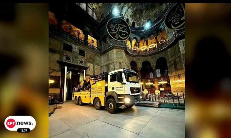 Πρωτοφανείς εικόνες στην Αγιά Σοφιά: Ανησυχία για τις εργασίες συντήρησης με βαριά φορτηγά μέσα στον ναό