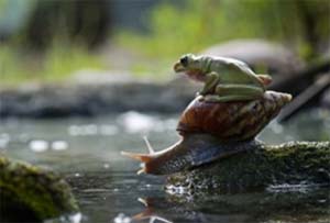 Τεμπέλης βάτραχος... μεταφέρεται από σαλιγκάρι!