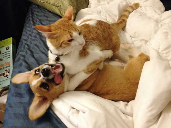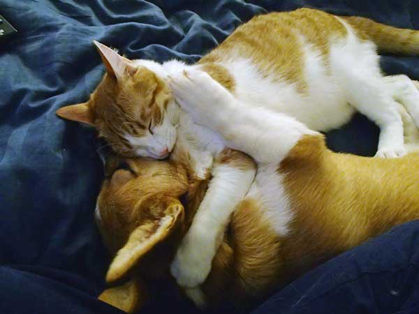 Έτσι, το γεγονός ότι αυτή η γάτα δεν θα σταματήσει να γλείφει αυτόν το σκύλο αποδεικνύει ότι είναι λίγο πολύ οι καλύτεροι φίλοι. Κια εκείνος από την πλευρά του λατρεύει να ξαπλώνει ανάσκελα και να την αφήνει να του τρίβει την κοιλιά, κάτι που αποτελεί σημάδι ότι αισθάνεται άνετα. Κάπως έτσι οι δυο τους βιώνουν την κοινή τους ζωή και δίνουν το καλό παράδειγμα σε άλλους...