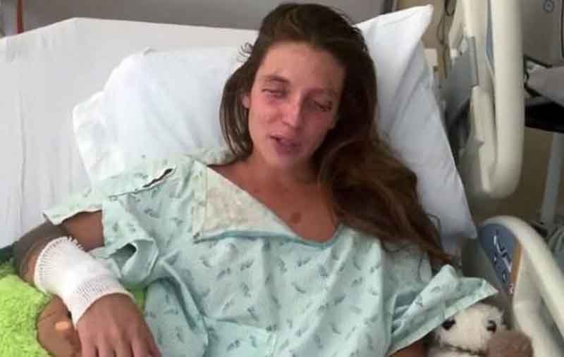 Επιπλέον η κοπέλα υπέστη βλάβες στο πρόσωπό της, μεταξύ αυτών και έναν τραυματισμό που καθιστά δύσκολο ακόμη και να μπορέσει να ανοίξει τα μάτια της λόγω ουλών στα βλέφαρα.