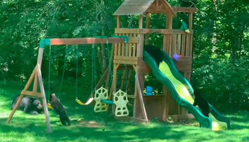 Στην αυλή του σπιτιού τους απαθανάτισε πρόσφατα μια οικογένεια 5 μικρά αρκουδάκια που έκαναν κούνια στην παιδική χαρά που υπάρχει στον κήπο τους. Το βίντεο είναι από το Άσβιλ της Βόρειας Καρολίνας, μια πόλη που είναι γνωστή για τον μεγάλο πληθυσμό της μαύρης αρκούδας. Εκτιμάται ότι στην πόλη των 90.000 κατοίκων τριγυρνούν περίπου 100 έως 200 αρκούδες. Οι κάτοικοι της περιοχής είναι μάλιστα αρκετά εξοικειωμένοι με την παρουσία τους.
