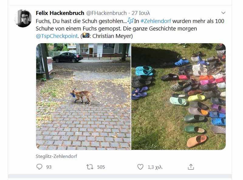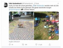 Άγνωστο παραμένει εάν οι νόμιμοι κάτοχοι των παπουτσιών χάρισαν τα λάφυρα στην αλεπού ή τα πήρα μαζί τους σπίτι.