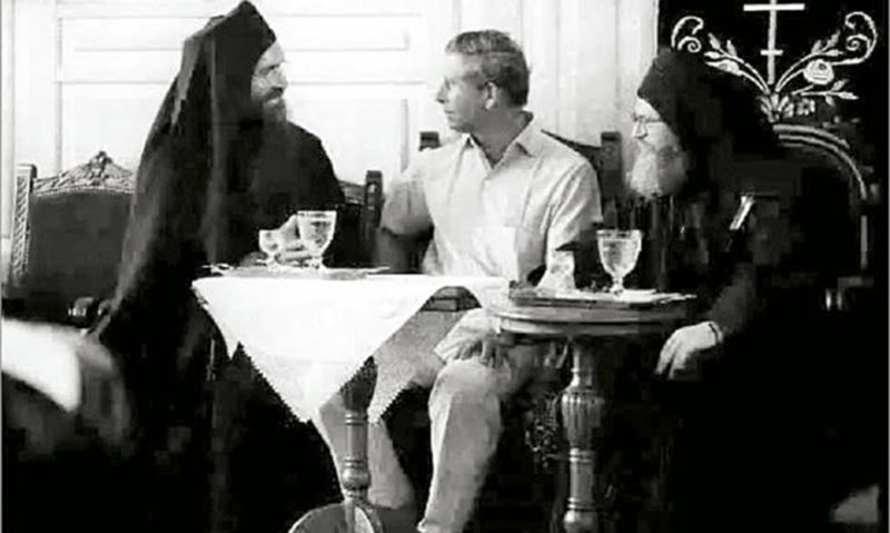 Μερικοί μοναχοί με μαύρα άμφια και επιρριπτάρια στέκονταν να περιμένουν, αλλά, με εντολή να κρατηθεί μυστική η ταυτότητα του συγκεκριμένου προσκυνητή, ήταν μια υποδοχή χωρίς φανφάρες. Καλεσμένος τους - ξυρισμένος σε αντίθεση με τους γενειοφόρους κληρικούς - ήταν ο πρίγκιπας Κάρολος, στην τρίτη του μυστική επίσκεψη στον Άθω τους τελευταίους 12 μήνες.