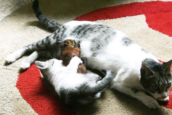 H Tita είναι μια απίθανη γάτα που ζει στην Κολομβία και ανήκει στον Ruben Gaviria, ο οποίος πρέπει να είναι πολύ περήφανος γι’ αυτήν. Ο λόγος; Ανέλαβε να θηλάζει έναν σκίουρο που βρέθηκε τραυματισμένος σε ένα πάρκο κοντά στο σπίτι της οικογένειας παράλληλα με το γατάκι της. Όσο για το παιχνίδι; “Και οι τρεις μαζί aπολαμβάνουν μοναδικές στιγμές”, λέει ο Ruben.