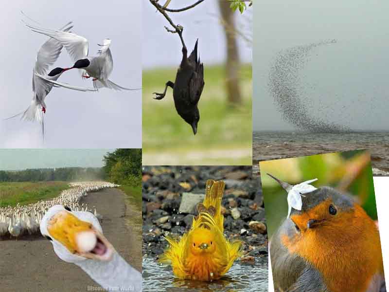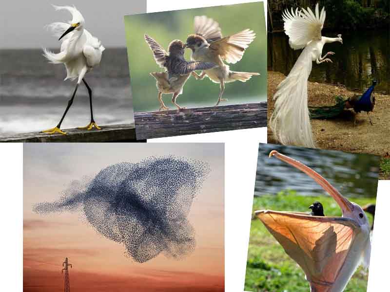 Πουλιά σε σχηματισμούς για να ταξιδέψουν σε χώρες μακρινές, πουλιά σε χορευτικές φιγούρες, πουλιά που δοκιμάζουν αν το νερό είναι ζεστό,