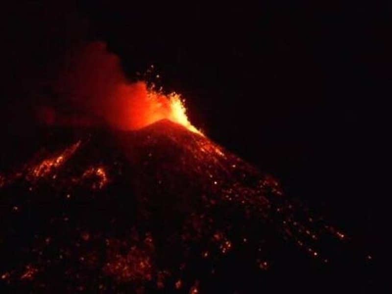 Λάβα και πετρώματα εκτοξεύονται από τον νοτιοανατολικό κρατήρα του ηφαιστείου. Η κατευθύνεται προς την κοιλάδα «Mπόβε», στην οποία δεν υπάρχουν κατοικημένες περιοχές.