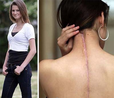 λαιμό της στα πλευρά της, στη λεκάνη και στο αριστερό της πόδι. Τα ασθενοφόρα την μετέφεραν στο Νοσοκομείο του Τόντον (musgrove Hospital) και αποφάσισαν πως εάν κατάφερνε να επιζήσει θα έπρεπε για να ενώσουν και να επαναφέρουν το κορμί της να χρειαζόταν τουλάχιστον 17 ράβδους τιτανίου να στηρίξουν τα πόδια και την σπονδυλική της στήλη.