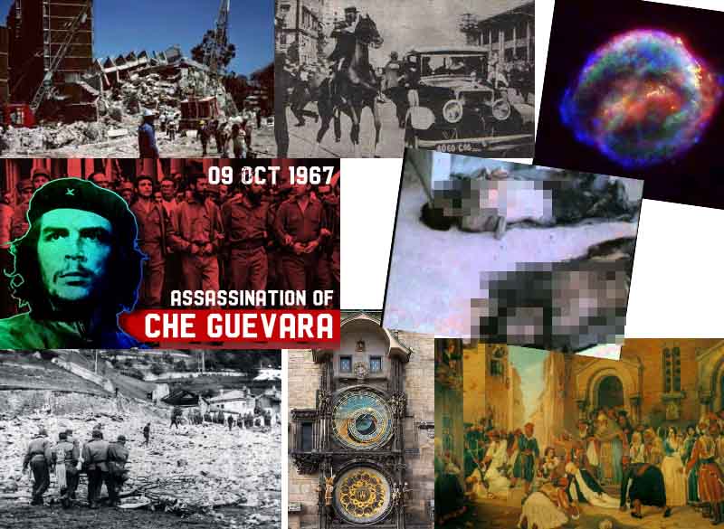 • 1967 - Μία ημέρα μετά τη σύλληψή του, ο μαρξιστής επαναστάτης Ερνέστο Τσε Γκεβάρα εκτελείται για απόπειρα υποκίνησης επανάστασης στη Βολιβία.