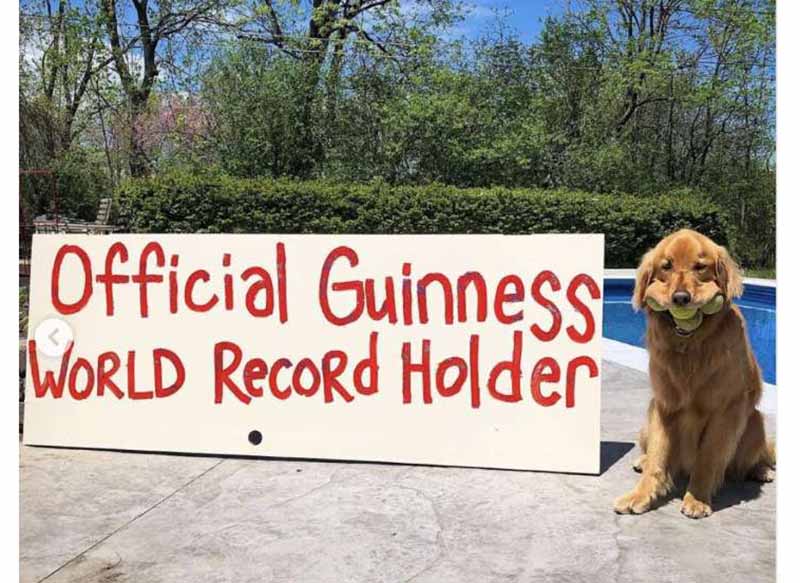 Ο Φίνλεϊ, ένας 6χρονος γκόλντεν ριτρίβερ, που κατέχει το παγκόσμιο ρεκόρ για τις περισσότερες μπάλες τένις που κρατάει στο στόμα ένας σκύλος – στο σύνολο είναι έξι.