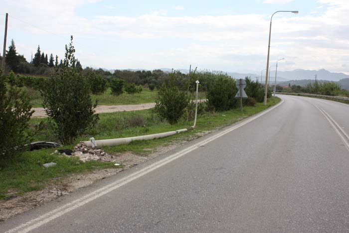 Από τότε, οι δύο κολώνες φωτισμού, που τις «θέρισε» τότε το ένα ΙΧΕ αυτοκίνητο, παραμένουν εκεί!